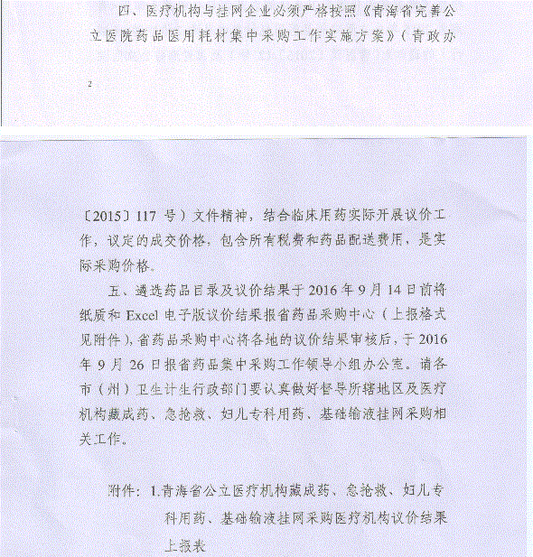 附件1:青海省公立医疗机构藏成药、急抢救、妇儿专科用药、基础输液挂网采购医疗机构议价结果上报表.xls