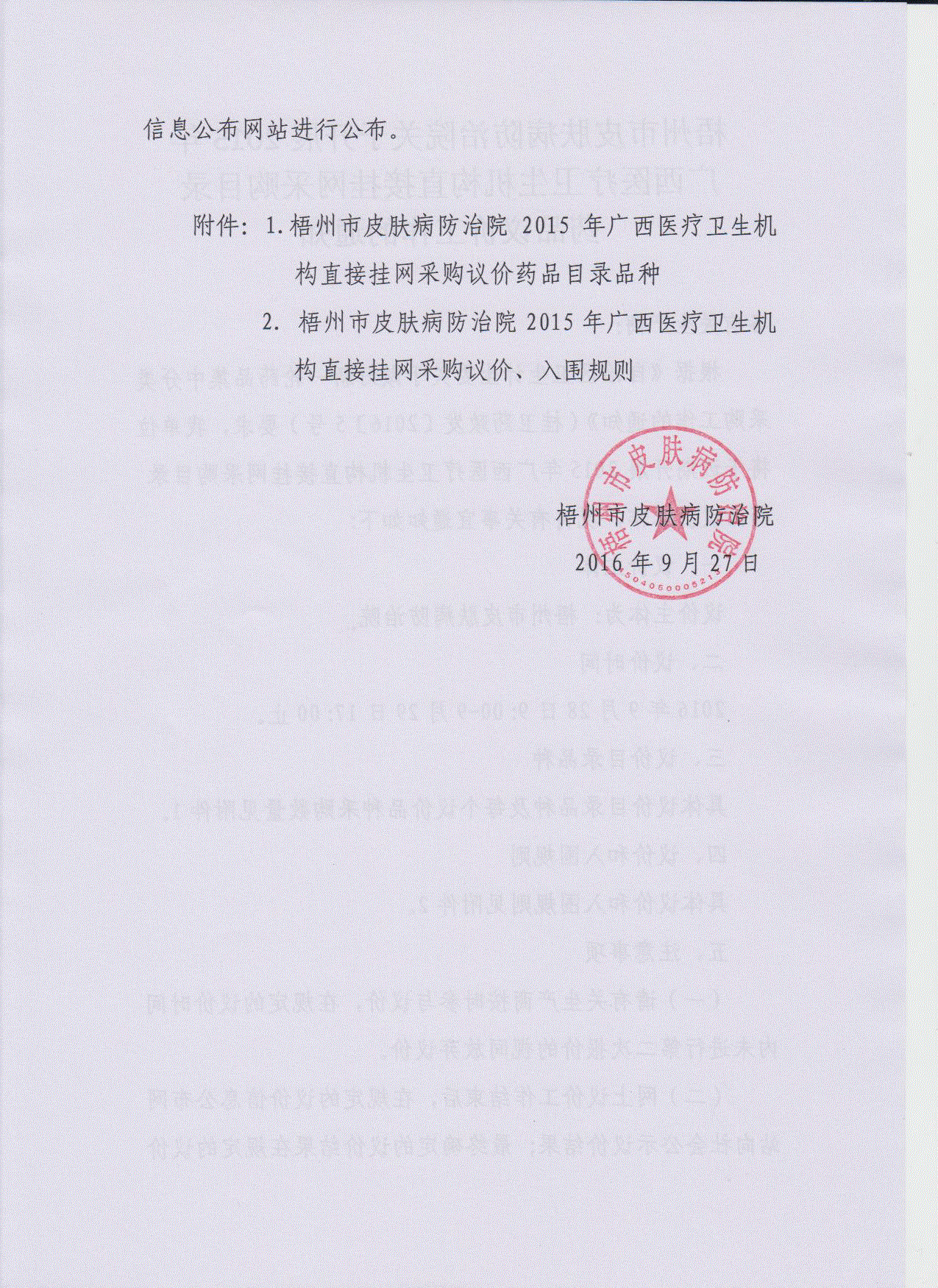 > 广西壮族自治区梧州市皮肤病防治院关于开展2015年广西医疗卫生机构直接挂网采购目录药品议价工作的通知