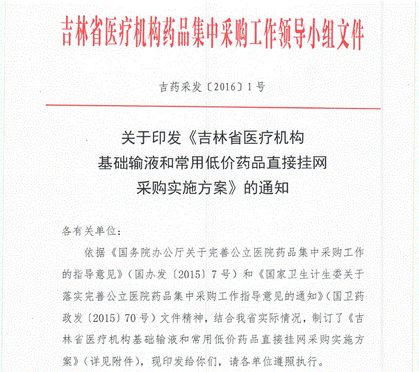 附件:吉林省医疗机构基础输液和常用低价药品直接挂网采购实施方案