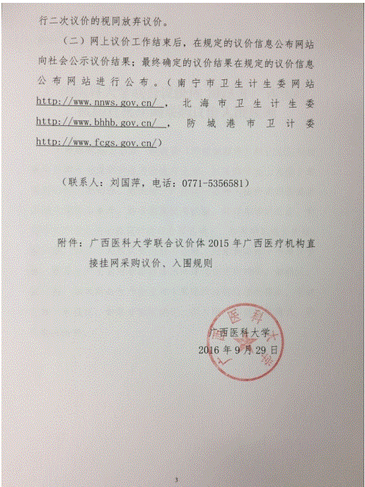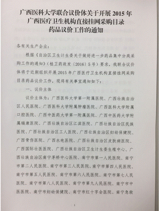 > 广西壮族自治区柳州市广西医科大学联合议价体关于开展2015年直接挂网采购目录药品议价工作的通知、议价入围规则、补充说明