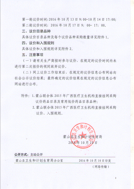 广西壮族自治区梧州市关于蒙山县联合体开展2015年广西医疗卫生机构直接挂网采购目录药品议价工作的通知
