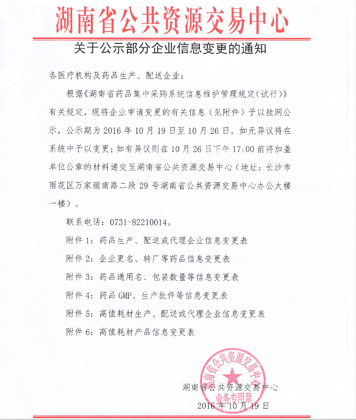 > 2016年湖南省关于公示部分企业信息变更的通知(2016.10.19)