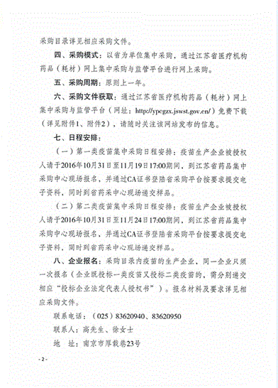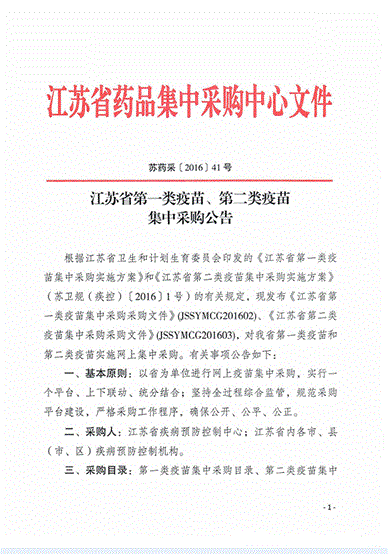 > 2016年江苏省第一类疫苗、第二类疫苗集中采购公告