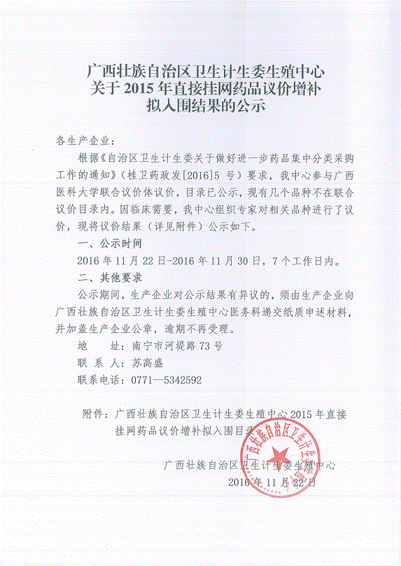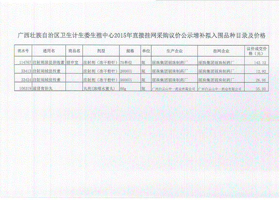 2016年广西壮族自治区关于2015年直接挂网药品议价增补拟入围结果的公示