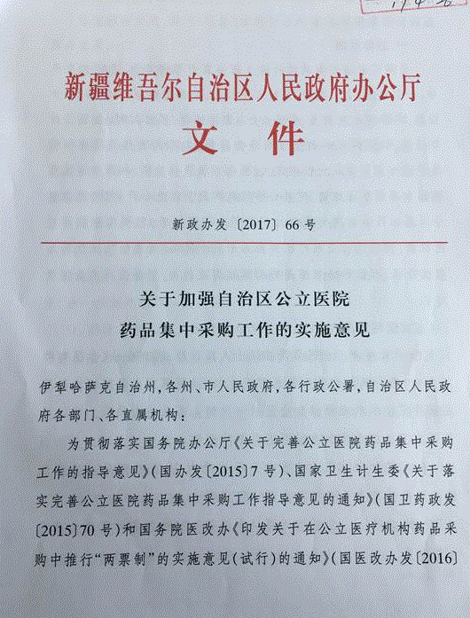 > 2017年新疆维吾尔自治区卫生和计划生育委员会关于加强自治区公立医院药品集中采购工作的实施意见