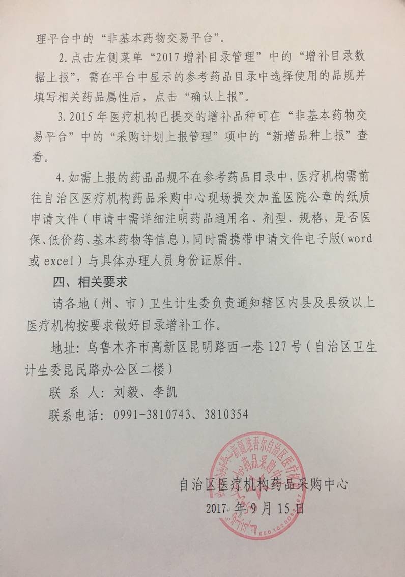 > 新疆维吾尔自治区关于开展2017年自治区医疗机构药品集中采购拟采购目录增补工作的通知