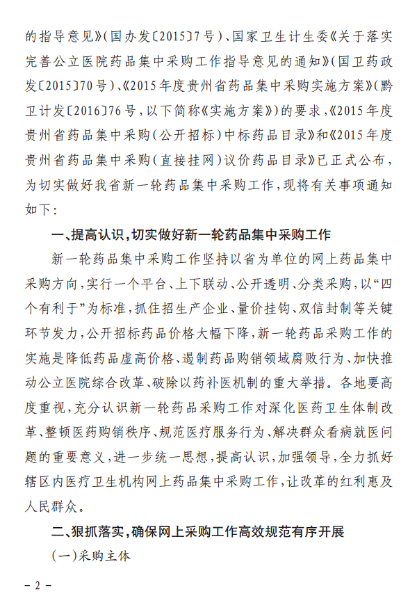 > 2018年贵州省关于做好新一轮药品集中采购工作的通知
