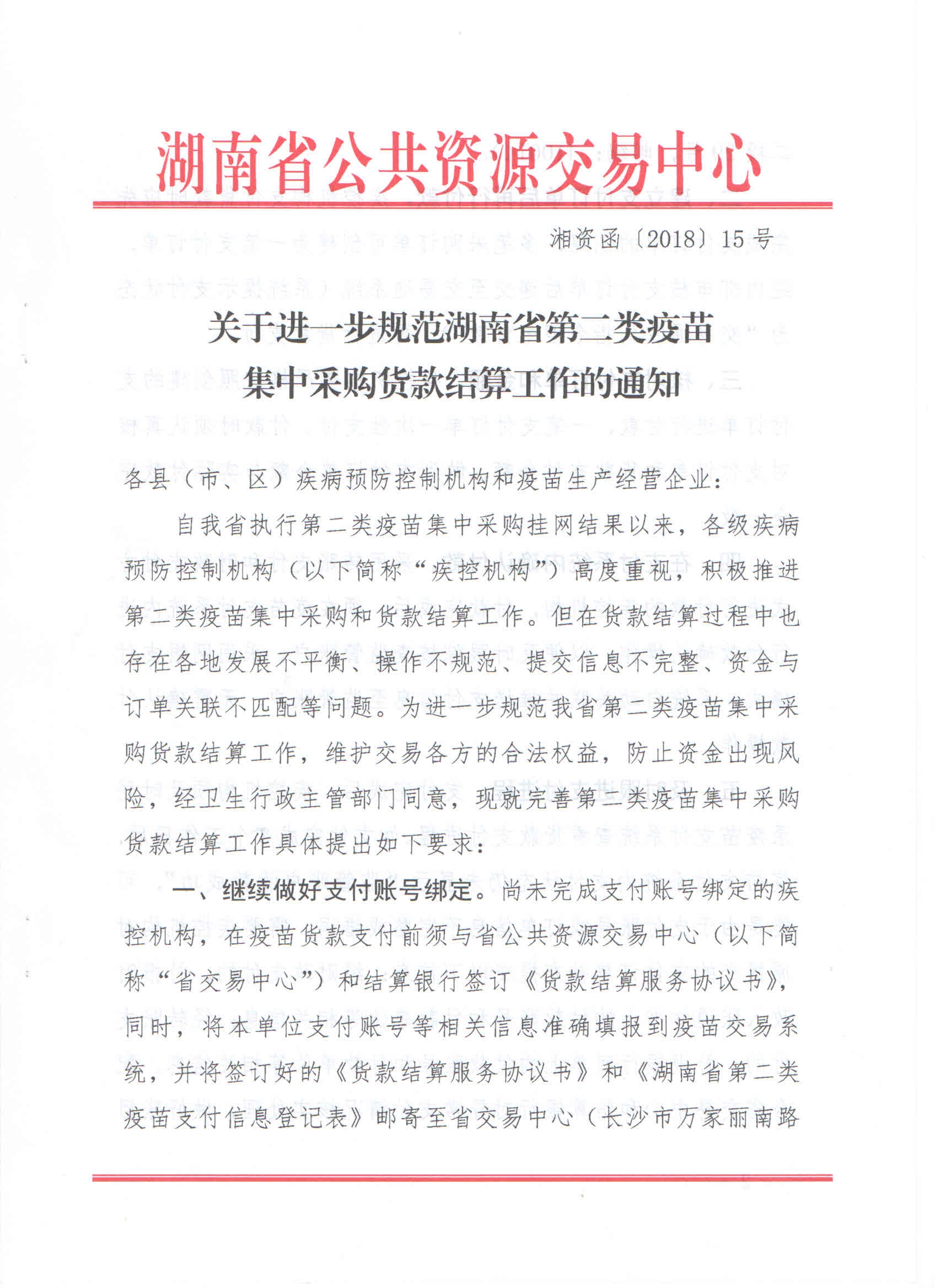 > 2018年关于进一步规范湖南省第二类疫苗集中采购货款结算工作的通知