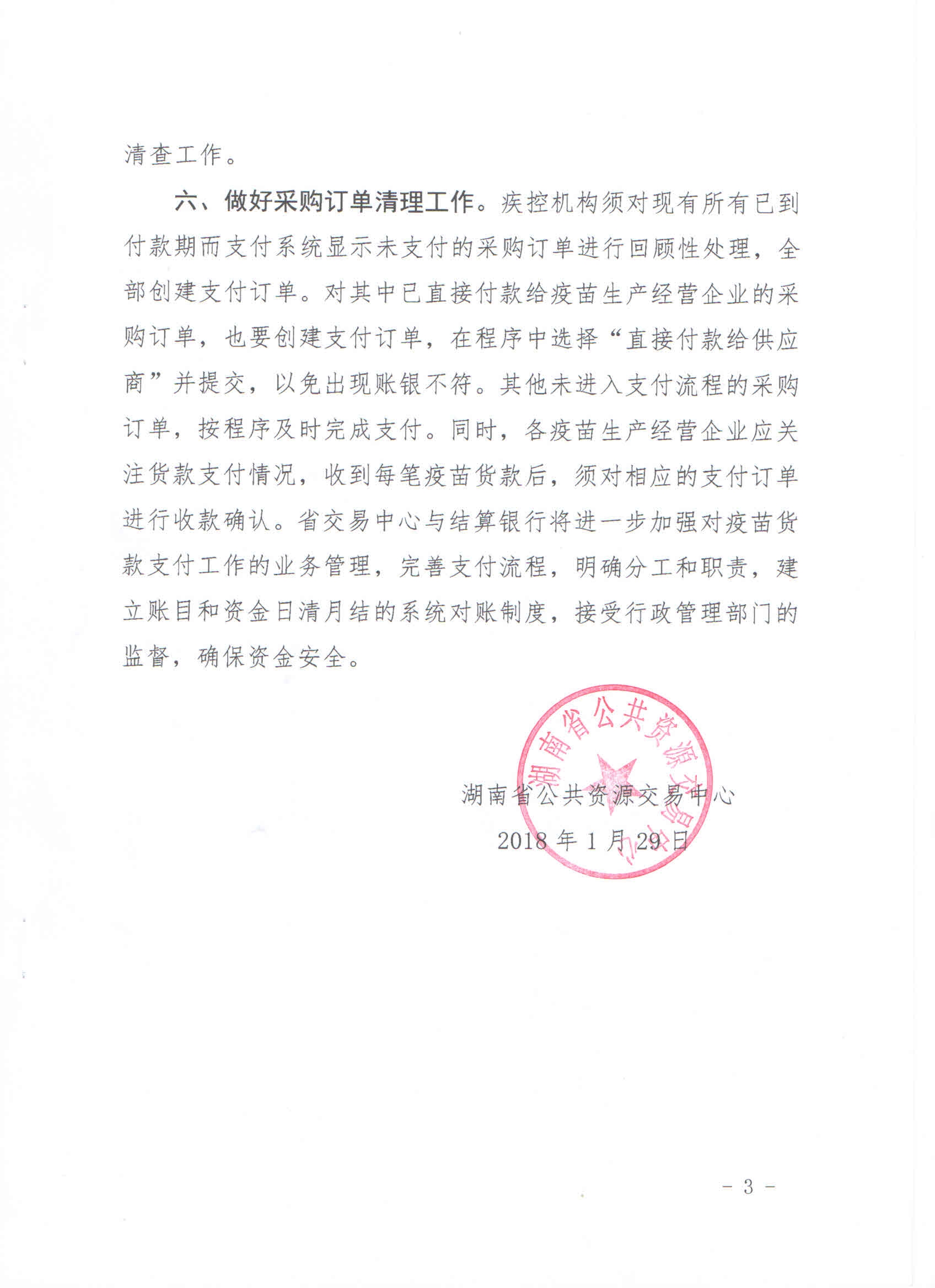 2018年关于进一步规范湖南省第二类疫苗集中采购货款结算工作的通知