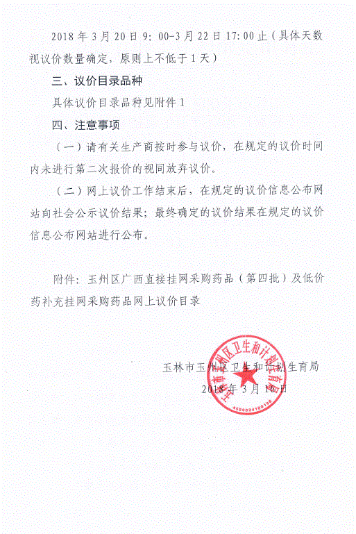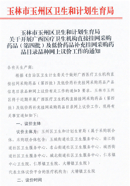 > 2018年广西壮族自治区玉林市玉州区卫生和计划生育局关于开展广西医疗卫生机构直接挂网采购药品
