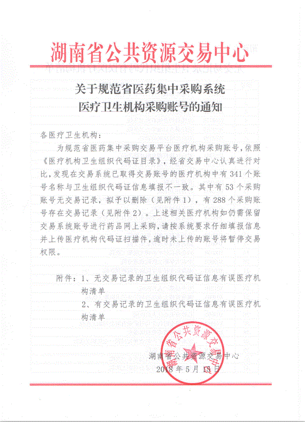 2018年湖南省关于规范省医药集中采购系统医疗卫生机构采购账号的通知