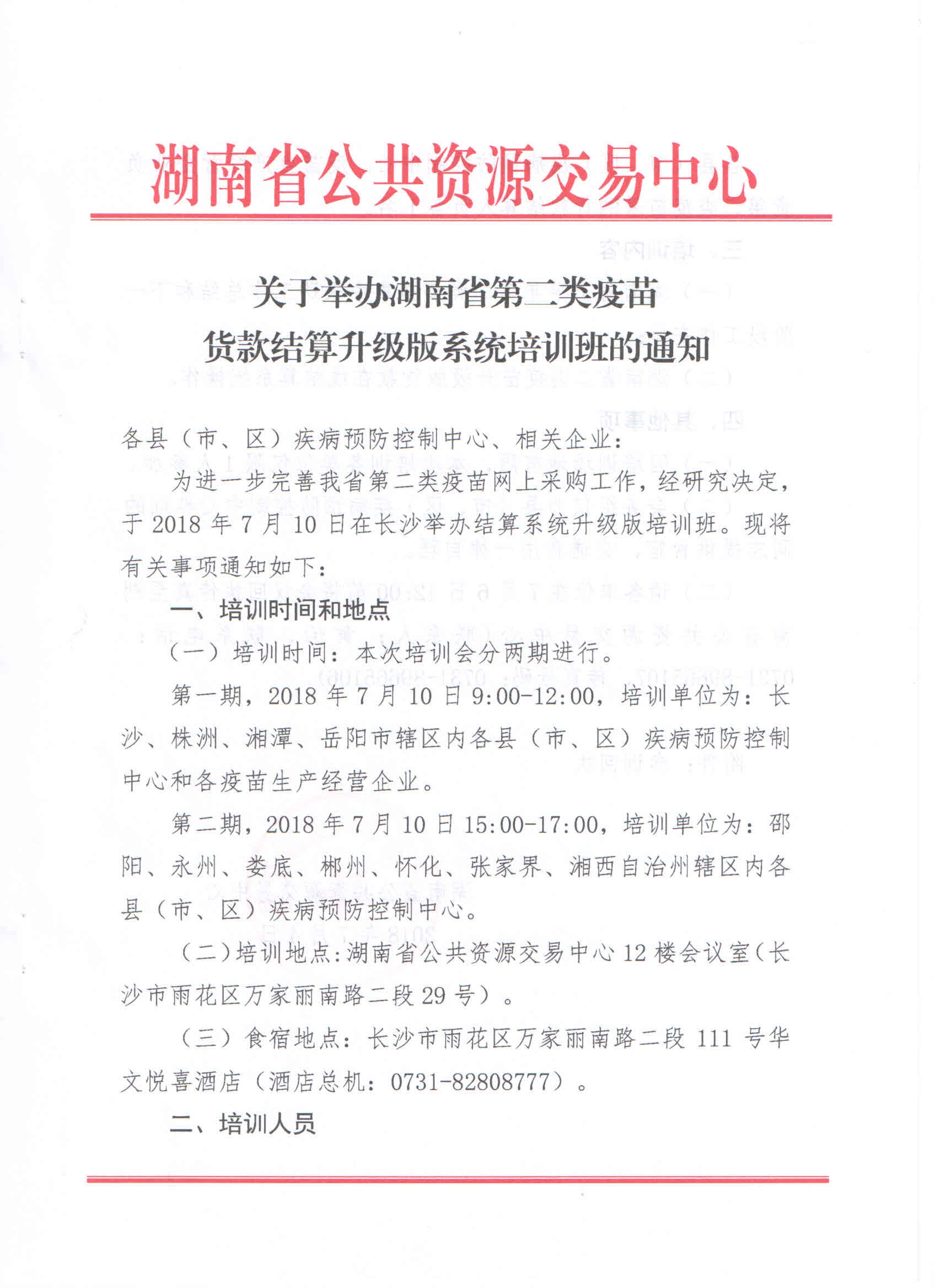 2018年关于举办湖南省第二类疫苗货款结算升级版系统培训班的通知